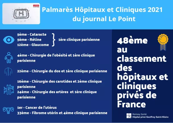 Actualités L'hôpital privé Geoffroy Saint Hilaire au palmarès 2021 du Journal Le Point le 06/10/2021 Selon le journal Le Point du jeudi 23 septembre 2021 (2563) Retour